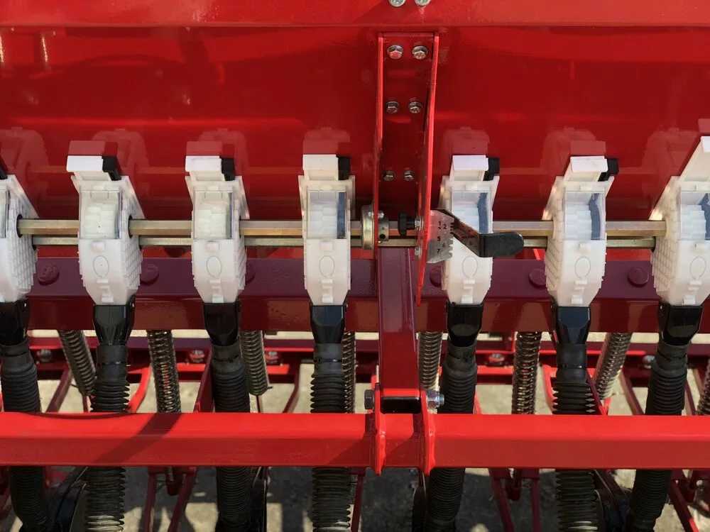 Зерновой высевающий аппарат имеет двохуровневую зубчатую катушку, которая обеспечивает бесперебойную подачу зерна. Штифтовая катушка предназначена для высева мелкосемянных культур.