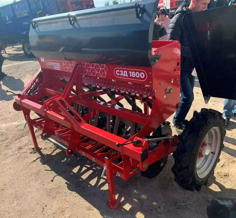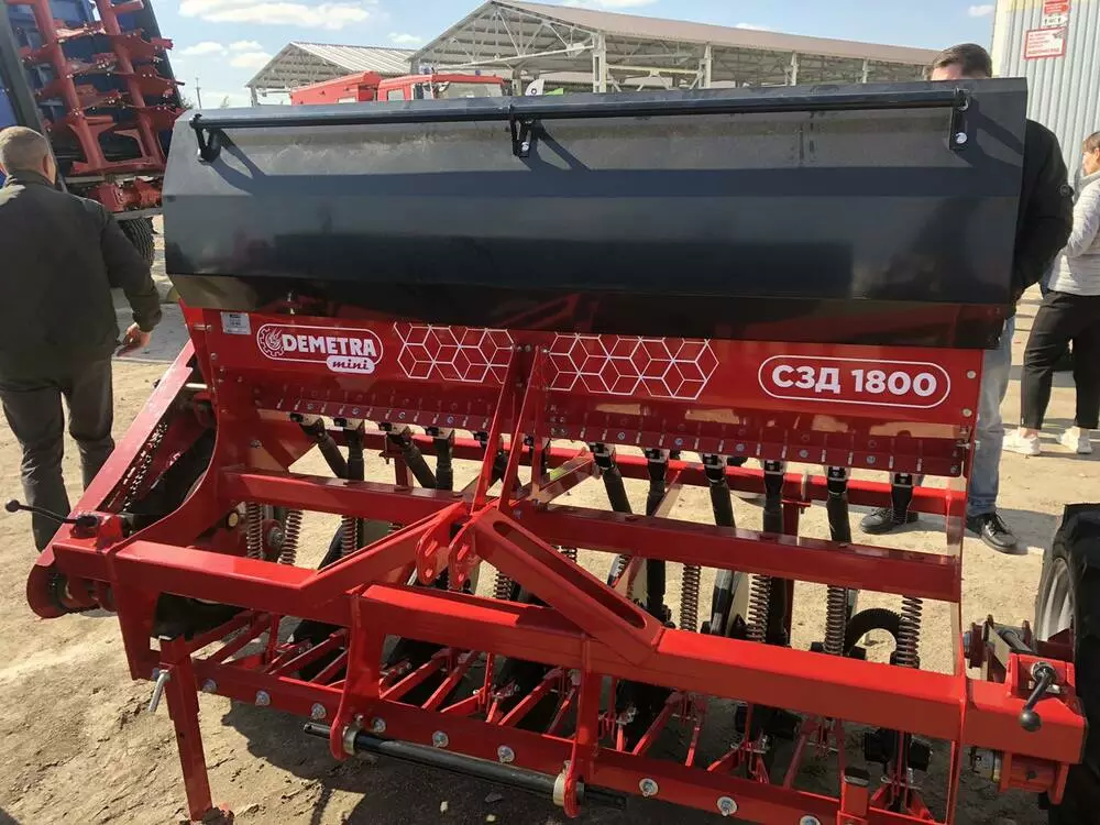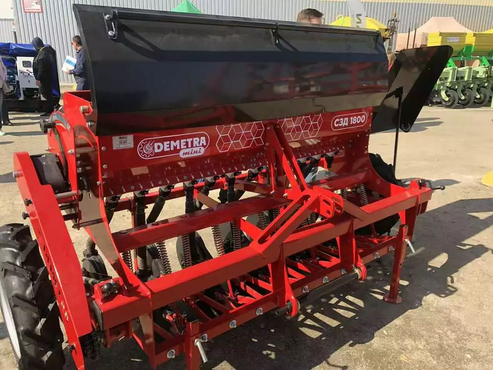 Сеялка зернотуковая "ДЕМЕТРА МИНИ" 1800V, c бесступенчатой коробкой передач(вариатор), предназначена для рядового посева зерновых культур (пшеницы, ячменя, ржи, овса), зернобобовых (соя, горох, фасоль, нут, чечевица, бобы), мелкосемянных культур (рапс, горчица, лен) сыпучих и средне сыпучих семян трав с одновременным внесением минеральных удобрений.